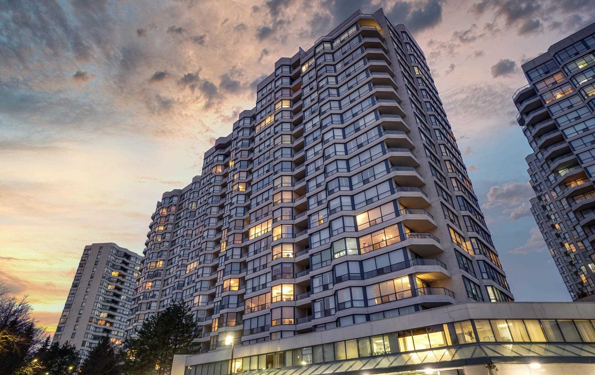 Anyone who's seeking a York Region condo for sale should consider Skyrise on Yonge Condos at 7300 Yonge Street, 1 Clark Avenue. Skyrise Developments completed this building back in 1991, but unlike other buildings of that age, maintenance fees are on the higher end at $0.86 per-square-foot. The 19-storey building is home to 412 suites with.